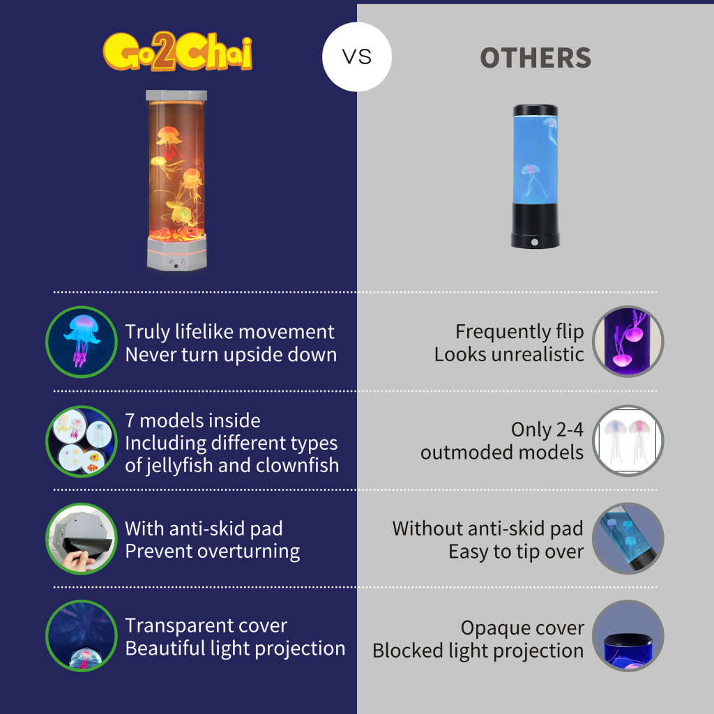 Truly Lifelike Jellyfish Aquarium – This jellyfish lamp comes with latest innovative design jellyfish model that never turn upside down. Watching the lifelike jelly fish models peaceful yet interesting movement inside jellyfish tank, you will be relaxed as never before.